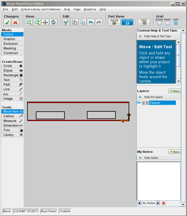 1. On the Standard toolbar, click Edit Face Button-editface NEW.png, then click the chassis (bottom) of the enclosure. The Face Editor window opens.